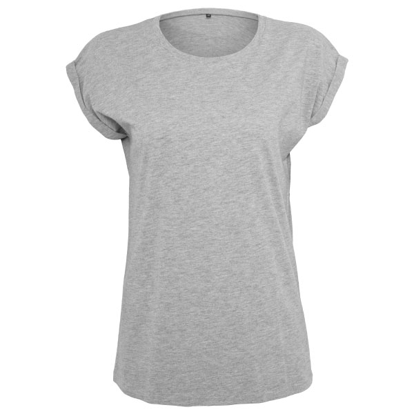 Das Ladies Extended Shoulder Tee ist ein lässiges Basic-Shirt für jeden Tag und zeigt sich mit einem langen Schnitt und verkürzten Ärmeln.