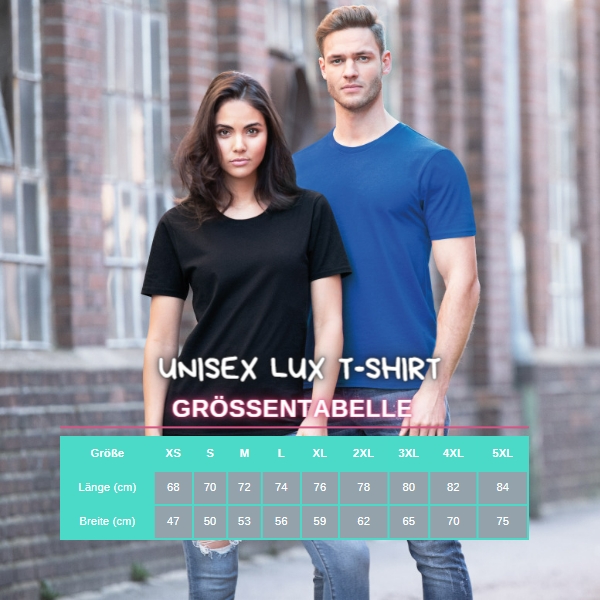 Unser Unisex Lux T-Shirt ist aus hochwertiger, gekämmter Ringspinn-Baumwolle. Es hat eine tolle Passform im Unisex-Style für Damen wie für Herren. Weich auf der Haut.