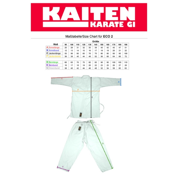 | Größe KAITEN Farbgurt | 230, 250, 275, 300, 325, 350 |